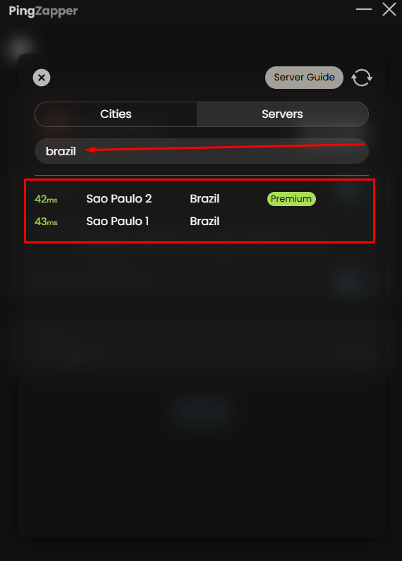 <p align="center"><strong>6.  buscar "Brazil" y selecciona cualquier servidor de Sao Paulo.</strong></p>