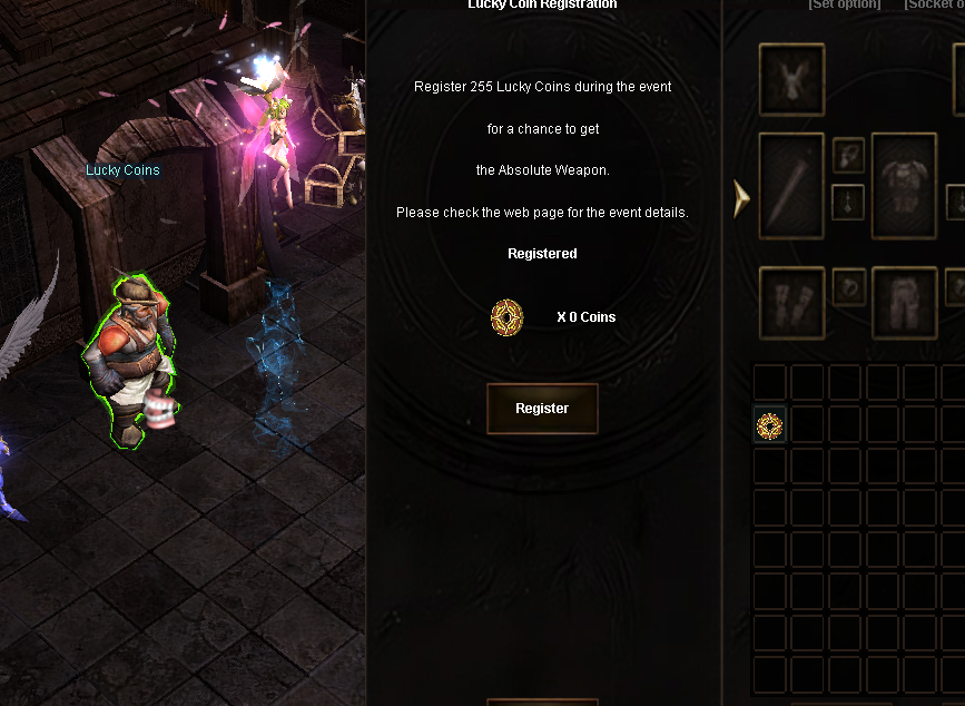 Las lucky coins se deben cambiar en el npc de "Event Square".